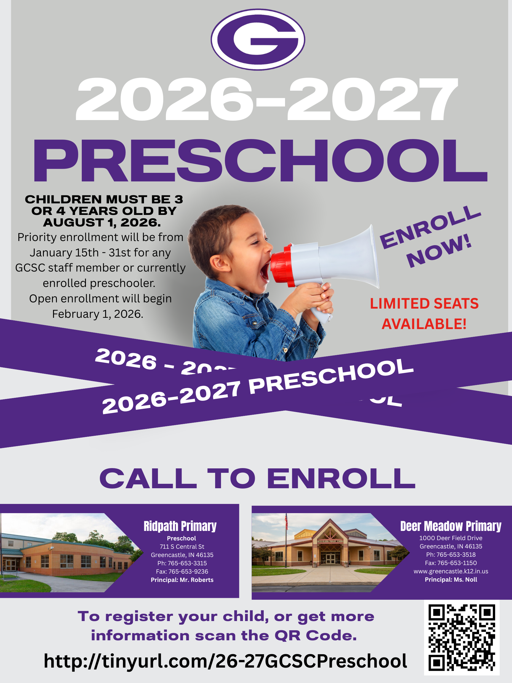 Good Morning,This is a reminder that priority enrollment for the 2026-2027 GCSC Preschool program ends Saturday the 31st and open enrollment begins February 1, 2026. Click HERE to enroll your child...